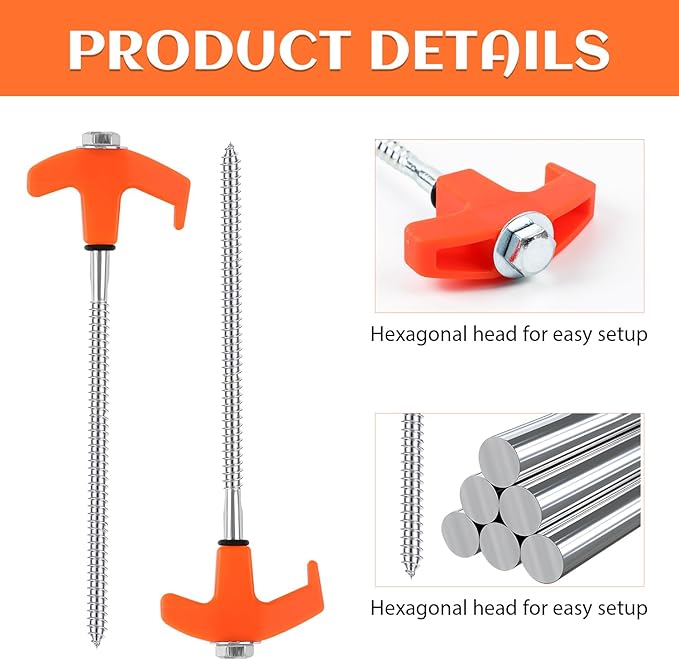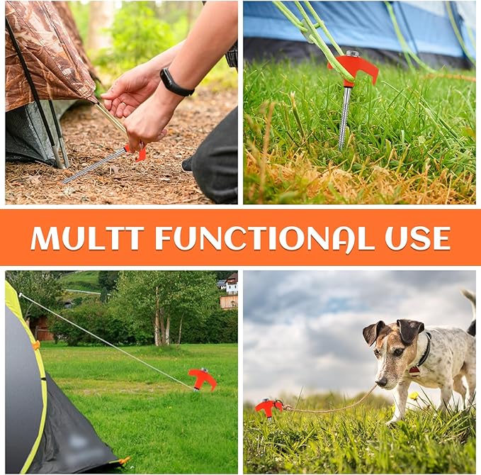 • 【8' Heavy Duty Tent Pegs Camping Stakes】 Our 8' Screw in Tent Stakes are designed for durability and reliability in any outdoor setting. Crafted from robust materials, these stakes provide maximum stability to keep your tent secure even in challenging weather conditions