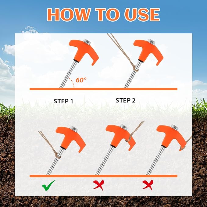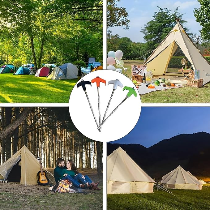 • 【Screw-In Tent Stakes Design】 With their innovative screw-in design, these tent stakes offer hassle-free setup. Simply twist them into the ground using a drill or by hand, saving you time and effort during campsite assembly.