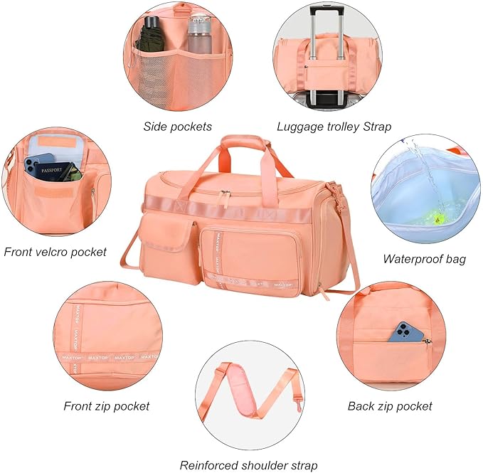 - Multi-Purpose Bags & Perfect Present:MAXTOP travel duffel bag can be used as a business travel bag, short journey bag, weekend overnight bag, toiletry bag, camping bag, sports duffle dag, gym tote bag, carry-on luggage, etc. Widely used, it is a perfect gift for your wife, friends and parents.