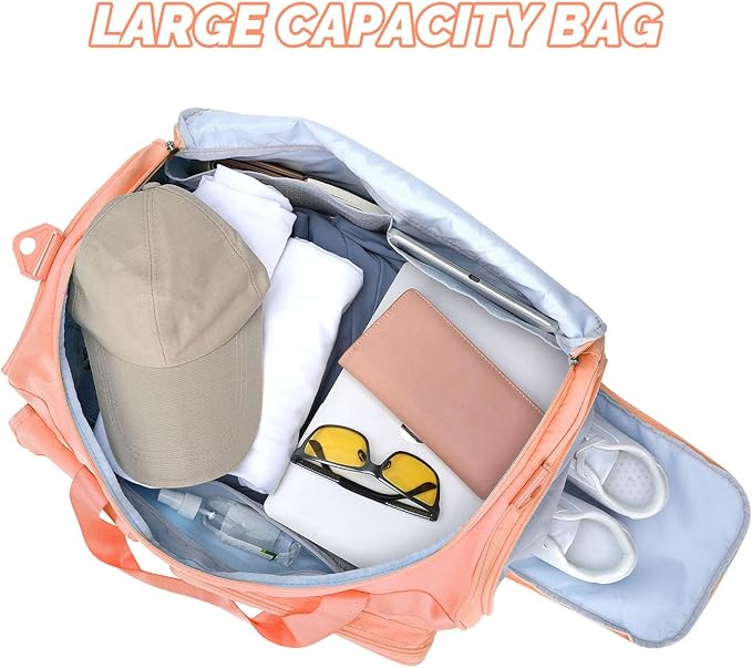 - Large Capacity & Adjustable Strap:Size:19x10.5x11 inches. The travel bag can be stored clothes, toiletries, fitness equipment and many other items. With a detachable adjustable shoulder strap, it can be easily adjusted according to personal preference to achieve a variety of carrying methods.