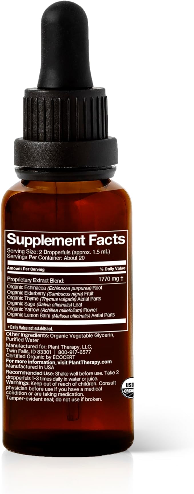 Plant Therapy Organic Immunity Boost Tincture 30 mL (1 oz) with Ehcinacea, Elderberry & Lemon Balm Extract, Supports a Healthy Immune System, Natural Defense Against Seasonal Threats