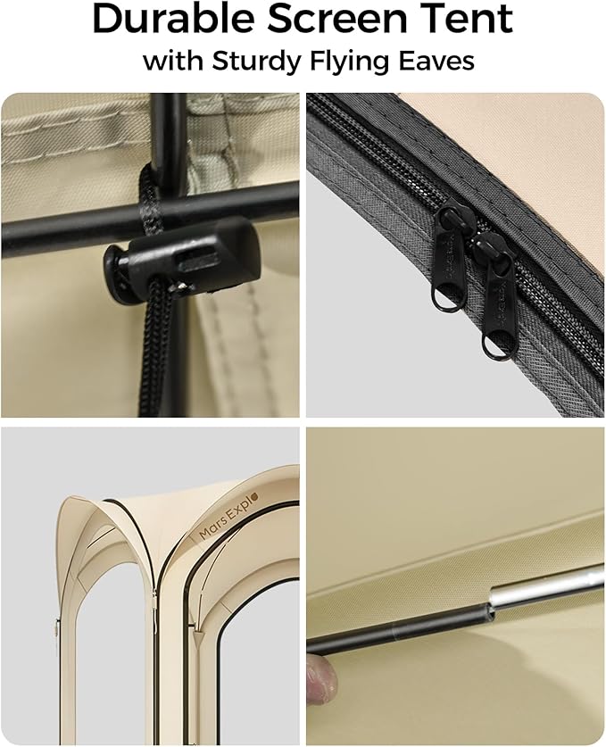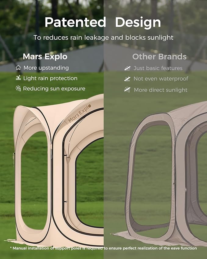 • ๐’๐ฉ๐š๐ถ๐ข๐จ๐ฎ๐ฌ & ๐„๐ง๐ก๐š๐ง๐œ๐ž๐ Design๏ผšโœ… 300D Oxford Fabric + Fiberglass Roof: Heavy-duty 300D Oxford fabric paired with rust-resistant steel frame and fiberglass-reinforced top for water resistance and expanded space. Double-stitched seams, dual-sided zippers, and adjustable door curtains ensure durability and convenience.