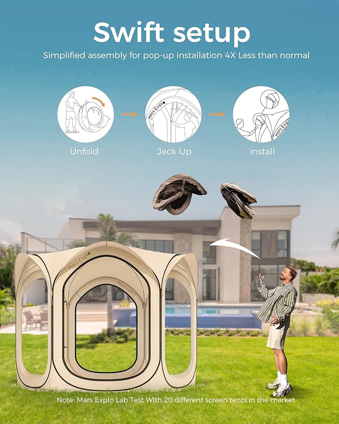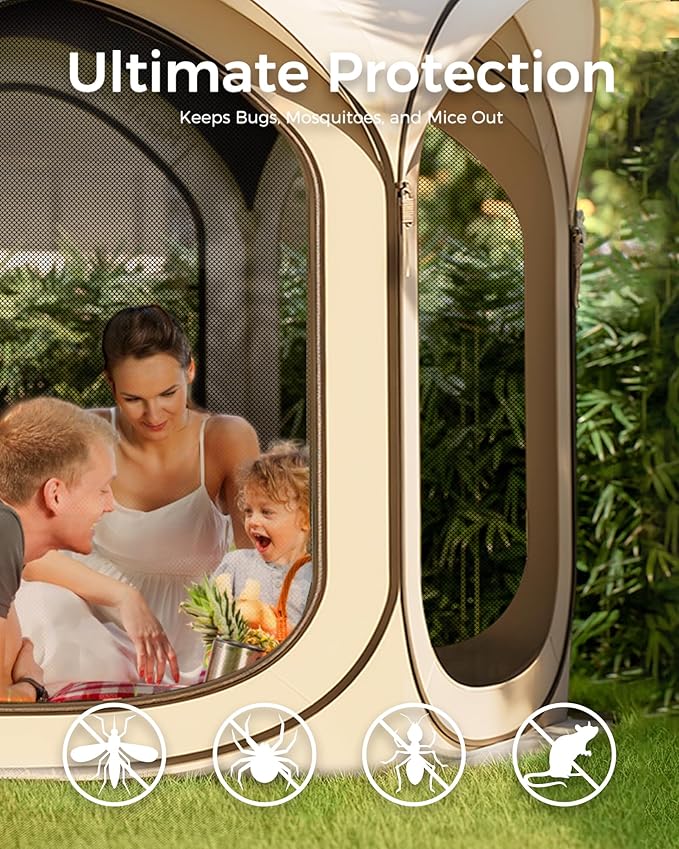 Screen Pop Up House Room Tent, Canopy Sun Shade Shelter for Camping, Patio, Backyard, Deck & Outdoor Activities, Portable Gazebo, Not Waterproof, 10'x10',Beige