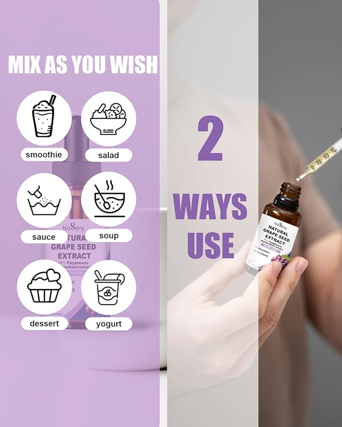 • 【Enhanced Wellness】NaSeny's Grape Seed Extract Drops offer 300 MG of grape seed extract. This nutrient-dense formula is meticulously developed to contribute to your overall well-being, without making any claims related to the treatment or prevention of diseases.