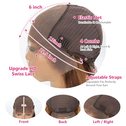 - 【Highlight Human Hair Wig Cap Process】This Highlight Honey Blonde Lace Front Wig is Made of an Upgraded 13x6 Large Lace and 3D Dome Cap. Medium Cap Size (21.5 - 22.5 Inches) with Adjustable Straps and 4 Combs, providing more comfort. Human Hair 13x6 Lace Front Wigs, Easy to Install, Durable, and Easy to Adjust, Fit Most Customers' Heads Perfectly