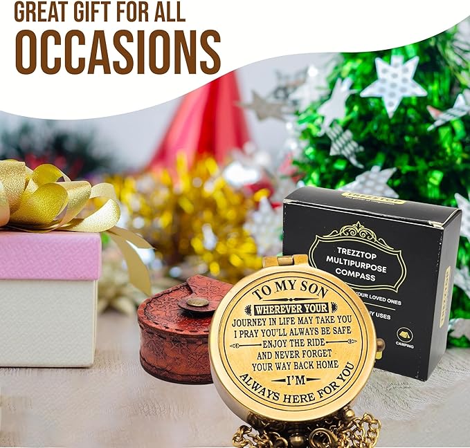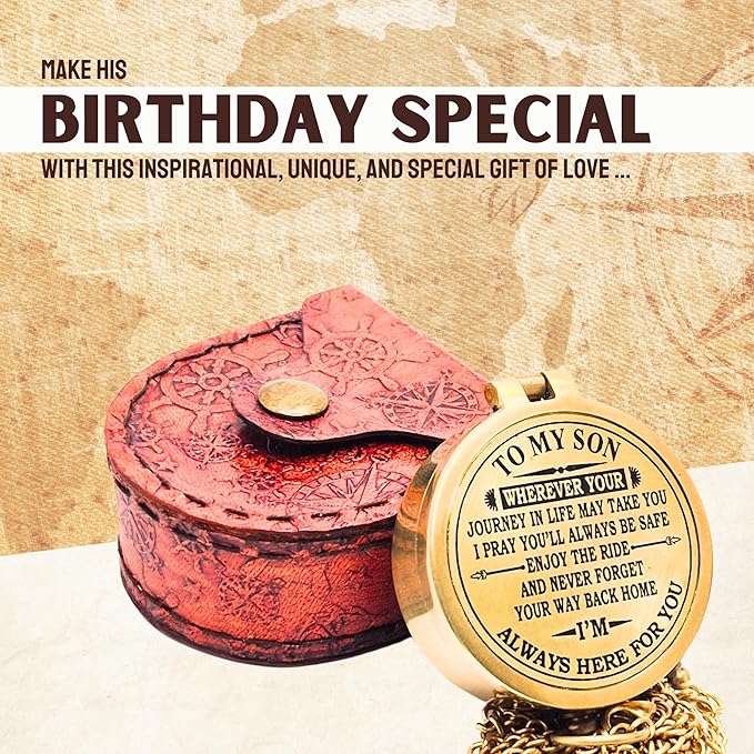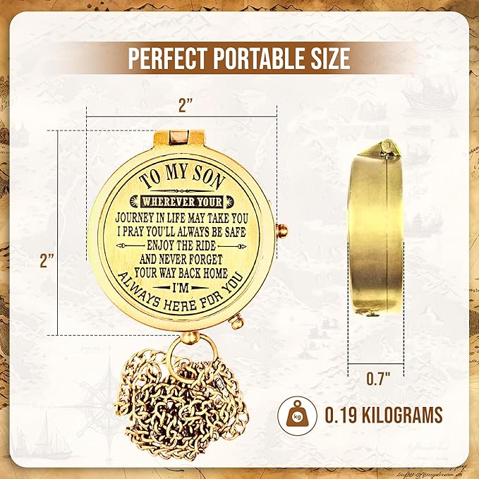 • ✅ UNIQUE INSPIRATIONAL GIFT OF LOVE- Motivational Uplifting Gift Compass Featuring 'To My Son - I'm Always Here For You' Message That Expresses Deep Love & Care. It's A Unique Confirmation Gift For Men, Communion Gift For Teenage Kids, Baptism Gift For Boys, Graduation Gift For Boys, Appreciation Gifts For Men, Meaningful & Sentimental Gift For A Son.