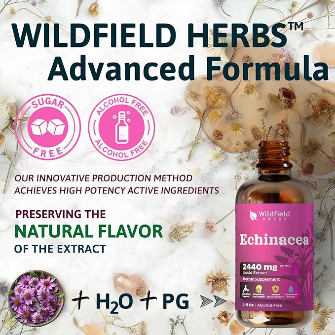 • Premium quality: Our alcohol-free liquid Echinacea Tincture is derived from the root of Echinacea purpurea, providing significant benefits with 814 mg of dried powder per serving. This extract is formulated without alcohol, using water and natural extractants to maintain holistic balance.