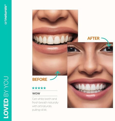 artnaturals Coconut Oil Pulling (8oz) Tongue Scraper & Toothbrush Set - Alcohol-Free Mouthwash - Infused with Magnesium & Peppermint for Teeth Whitening & Fresh, Healthy Breath and Gums