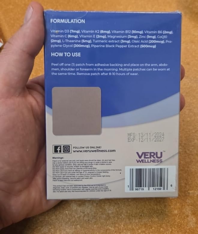 - Veru Wellness patch are Lactose, Gluten, and Sugar-Free. Easily designed to be worn discreetly. 100% Waterproof and sweat resistant.