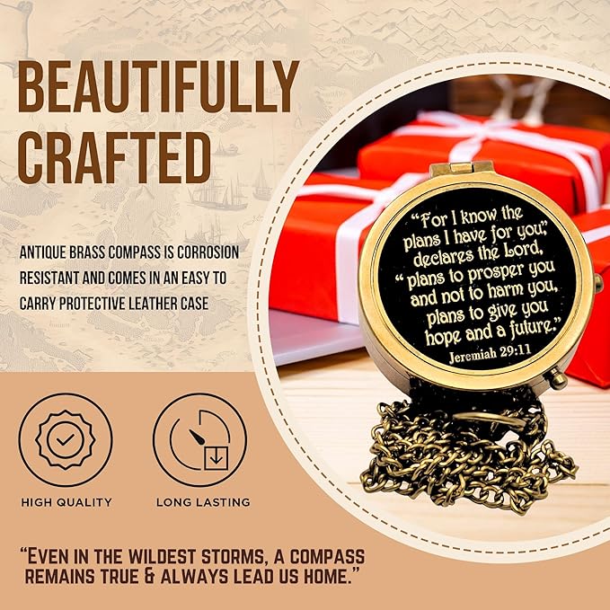 - ✅ UNIQUE AND INSPIRATIONAL GIFT OF FAITH- Motivational Uplifting Gift Compass Featuring the timeless wisdom of 'JEREMIAH 29:11 - FOR I KNOW THE PLANS I HAVE FOR YOU'. It's A Unique Confirmation Gift For Men, Communion Gift For Teenage Kids, Baptism Gift For Boys, Graduation Gift For Girls, Appreciation Gifts For Women, Meaningful Gift For Son, Sentimental Gift For Grandson.