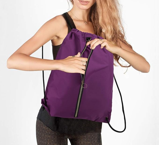 • 【CONVENIENT MULTI POCKET】::Our drawstring backpack includes 5 additional pockets. 1 large zipper additional pockets on the front of the drawstring bag for towels, clothes, small umbrellas or other items. 1 zipper pocket on the backside of the sports bag for women for holding small valuables like mobile phones, wallets, etc, 2 built-in pockets can separate items which can hold slippers and water glasses. 1 inside zip pocket for keys. It is safe for you to take the items conveniently.