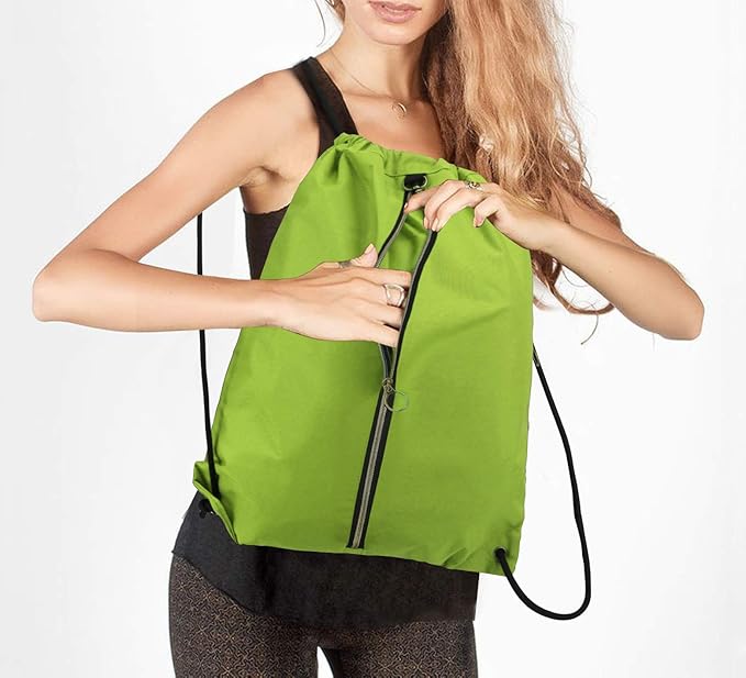 - 【CONVENIENT MULTI POCKET】::Our drawstring backpack includes 5 additional pockets. 1 large zipper additional pockets on the front of the drawstring bag for towels, clothes, small umbrellas or other items. 1 zipper pocket on the backside of the sports bag for women for holding small valuables like mobile phones, wallets, etc, 2 built-in pockets can separate items which can hold slippers and water glasses. 1 inside zip pocket for keys. It is safe for you to take the items conveniently.