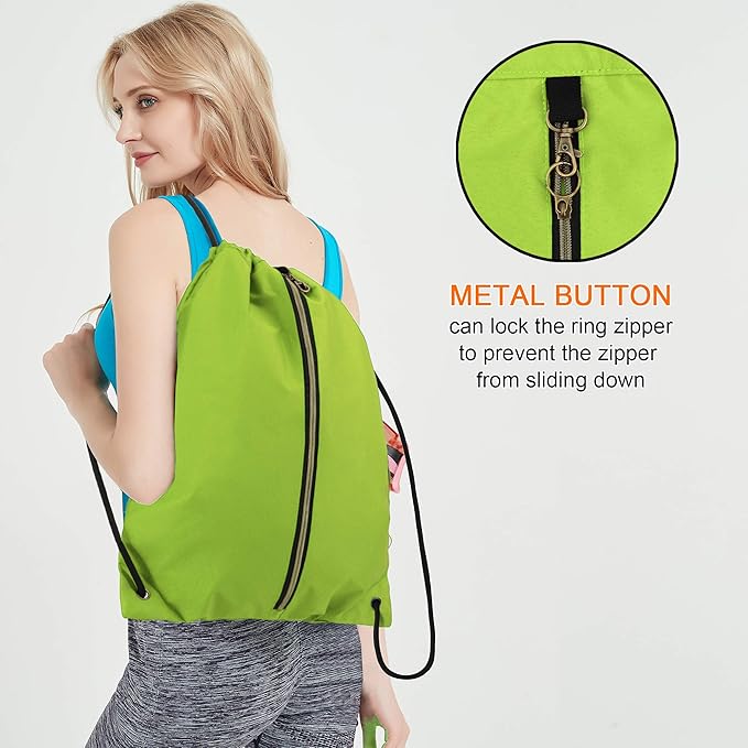 - 【EXTRA LARGE & CREATIVE FIXED DESIGN】: The size of our string bag is 19.2 'x 15'. The string backpack is large enough for the gym, soccer ball, volleyball, tennis racket, wrestling, boxing gloves, clothing & shoes, towel, laptop, and daily supplies. On the top of the small drawstring bags, the drawstring is a fixed metal buckle. The metal button can be used to lock the ring zipper avoiding the zipper from sliding down.