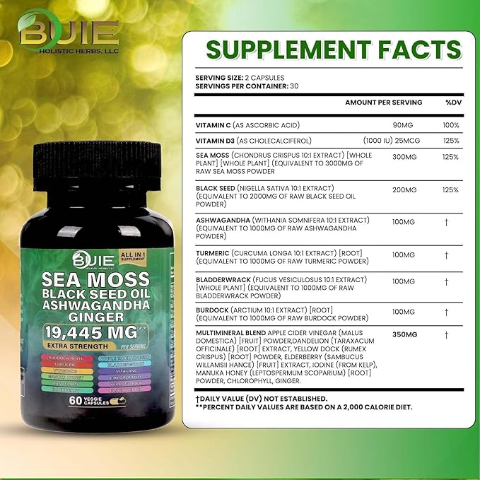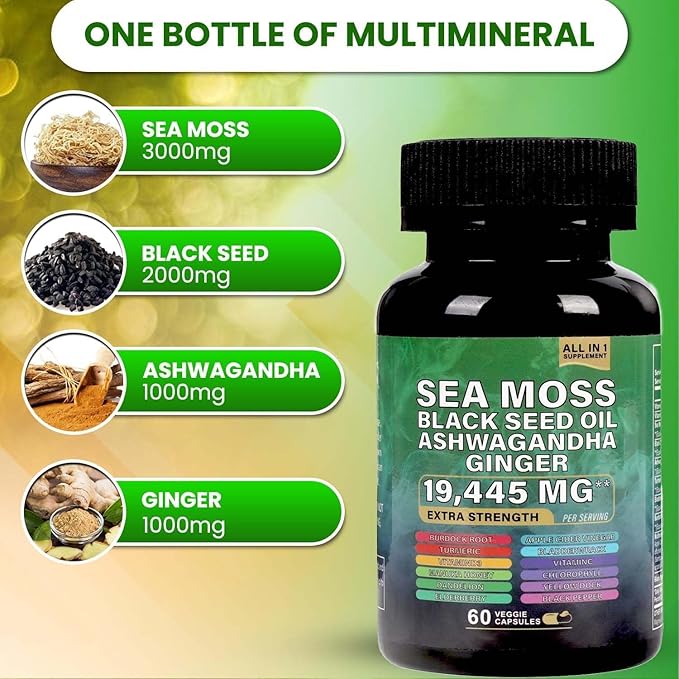• Boost Energy, Conquer Your Day: Charge up your mornings and power through your workouts with the pure strength of sea moss, black seed oil, ashwagandha, and ginger. These sea moss superfood capsules are designed to help you stay energized, focused, and unstoppable all day long.