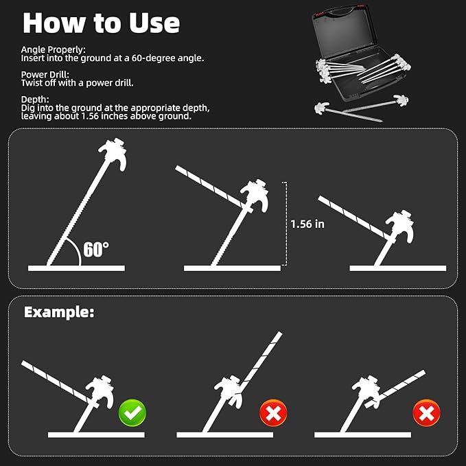 - BONUS INCLUDED: Comes with a convenient carrying case and a 13mm hex drill bit, making transportation and setup a breeze. The durable carrying case ensures your stakes are always organized and ready for your next adventure.