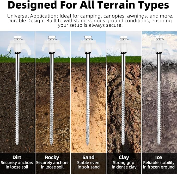- MULTI-PURPOSE: These versatile stakes are perfect for securing tents, awnings, pop-ups, canopies, gazebos, dog leashes, and holiday decorations. Whether for camping or festive setups, these stakes meet all your outdoor needs.