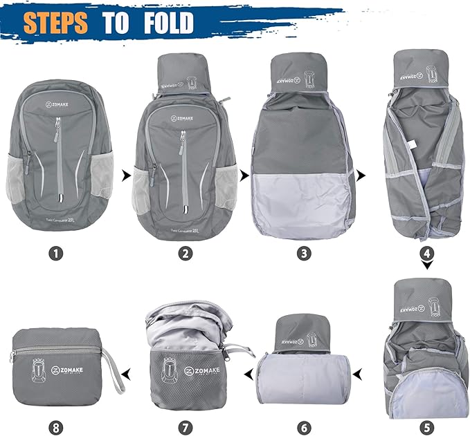• HIGH-QUALITY MATERIALS: Our light foldable backpack is water resistance(note:not completely waterproof).We use high-tear nylon fabrics and use the latest double-layer wear-resistant process to reinforce the backpack suture.After high-quality materials and light foldable hiking backpacks produced by good craftsmanship,it can effectively protect the items in the backpack.The zipper made of two-way SBS metal and high-quality resin materials greatly reduces the trouble of being stuck in the zipper
