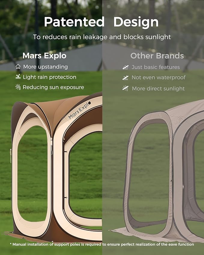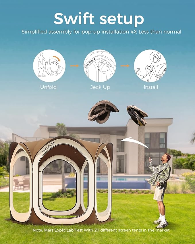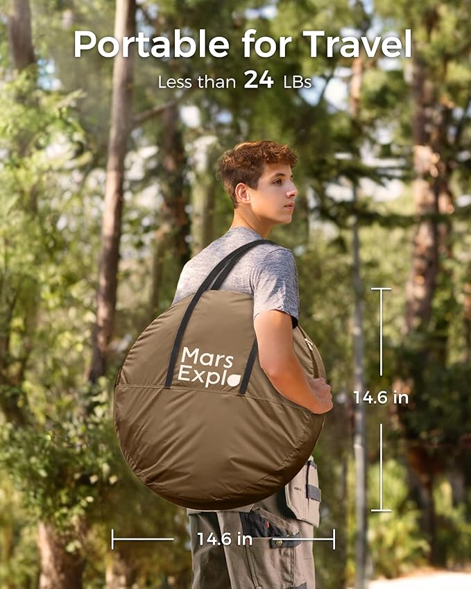 • ๐๐ž๐ฌ๐ญ ๐…๐ซ๐ž๐ž & ๐€๐ข๐ซ๐ฒ ๐„๐ง๐œ๐ฅ๐จ๐ฌ๐ฎ๐ซ๐ž:: Dive into serene outdoor leisure with the Mars Explo Screen Pop Up House. Designed with a sturdy 4-sided B3 fine mesh, this tent offers exceptional 360ยฐ airflow while keeping mosquitoes and other insects out. Crafted from high-quality Oxford fabric with a silver coating, it provides continuous UPF 50+ UV protection, ideal for various outdoor activities such as picnics and RV trips, ensuring a comfortable, insect-free zone