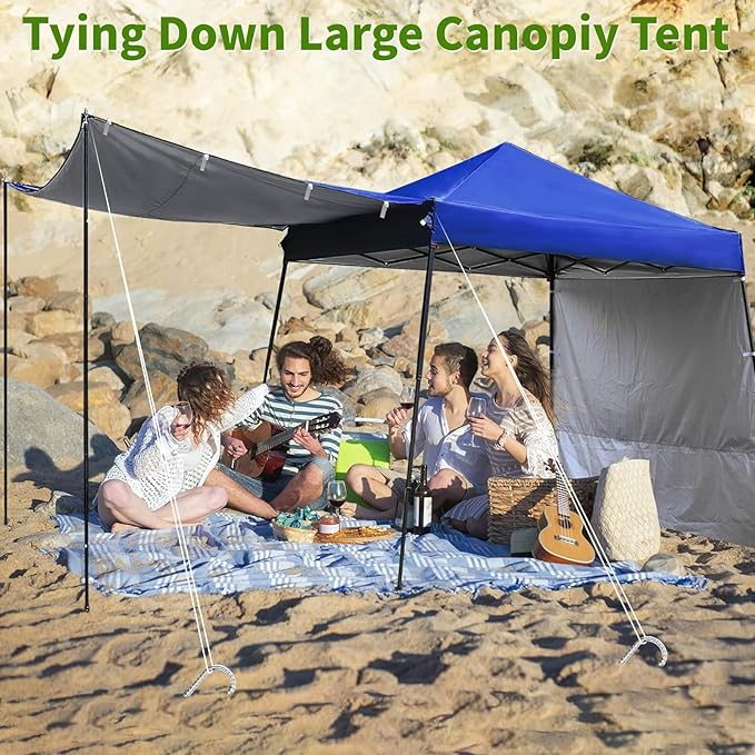• 【45 Degree Chisel Point End】The heavy duty stakes have a pointed end that makes it easy to go into the ground. The rope is pretty flush with the ground making it more secure and there is less chance of someone tripping over the stake.