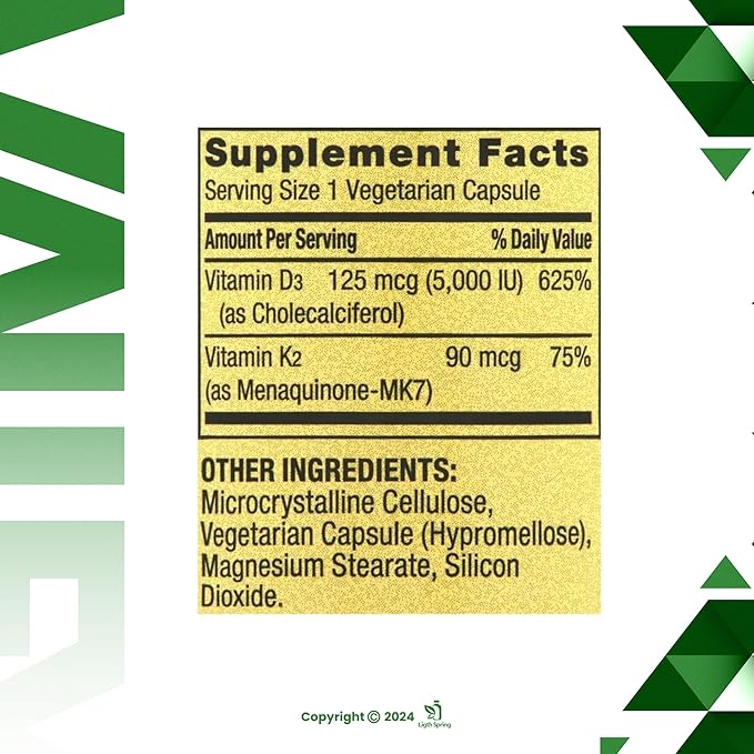 • Discover the benefits of D3 K2 Vitamin 5000 IU in easy-to-swallow softgels. Support bone strength with potent Vitamin D3 with K2 formula.