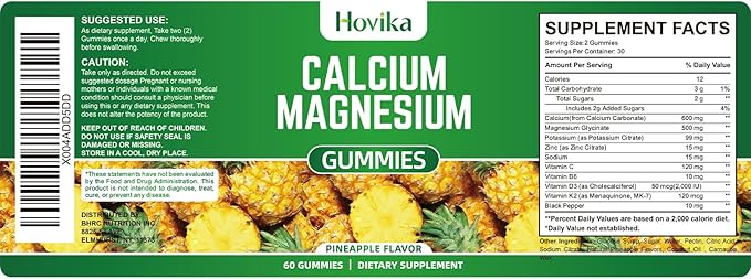 - Primary Supplement Type : Calcium, Magnesium, Potassium, Zinc