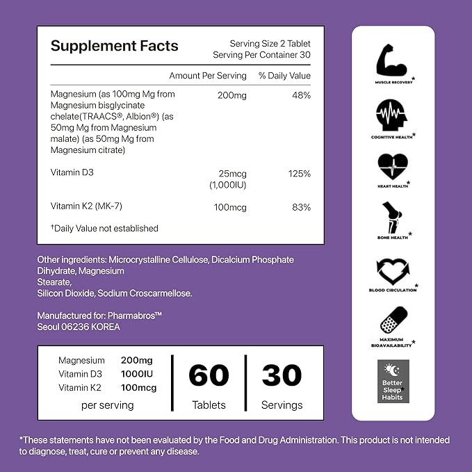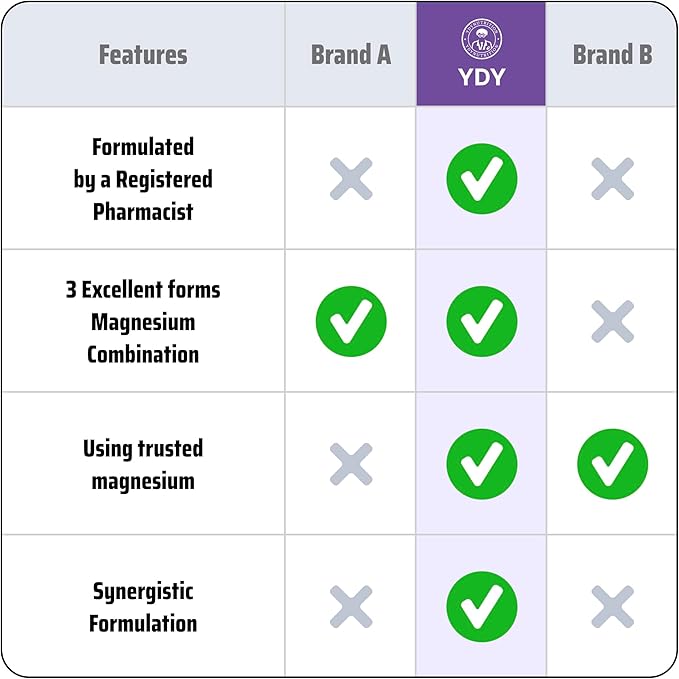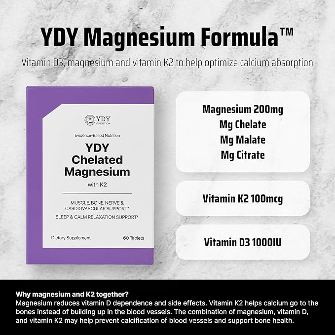 - 【Purity & Quality】 We use the highest-quality ingredients and produce under strict quality standards. YDY Magnesium with K2 is completely Non-GMO, free of gluten, and soy. Each box contains 60 Tablets for a 30-day supply.