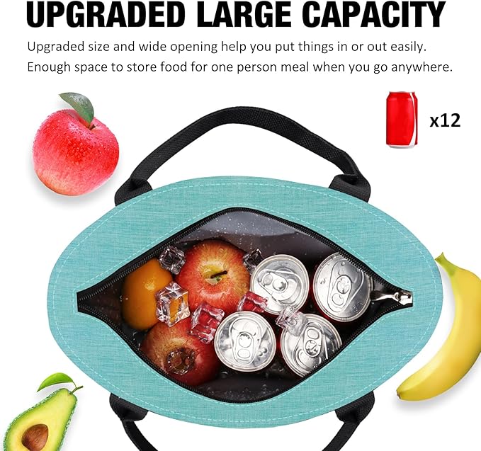 - 【LARGE CAPACITY】About 10.0L x 5.5W x 10.0H inches, suitable size for 1 or 2 people's lunch, such as 2 lunch boxes, some fruits, water bottles and drinks etc. Perfect as lunch tote bag for women, picnic bag, insulated lunch bag, sundry bag, suitable for coworker gifts for women and all age groups.