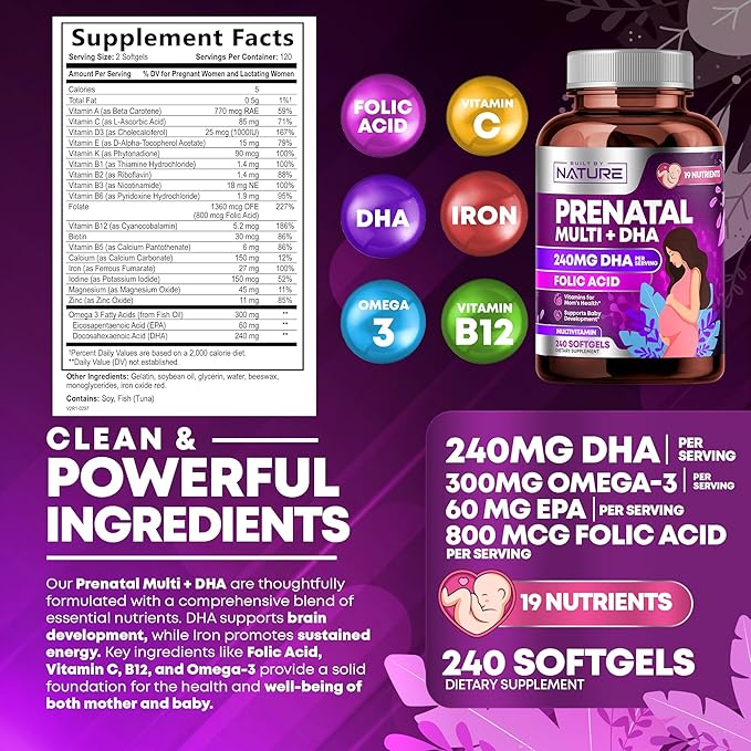 - Optimal Nutrient Formulation: Packed with essential nutrients including DHA, Folic Acid, Vitamin C, B12, Iron, and Omega-3 to support the overall health of both mother and baby.