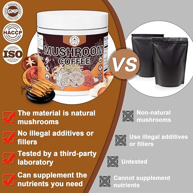• Heal Your Body & Mind: We use only the entire fruiting bodies of the mushrooms to ensure maximum potency and effectiveness. Our product features no carriers, fillers, extra starch, or grains; low caffeine content, making it suitable for those sensitive to caffeine; and a commitment to quality, backed by excellent customer service and a satisfaction guarantee. Enjoy a pure, potent, and effective mushroom coffee blend that supports your overall health.