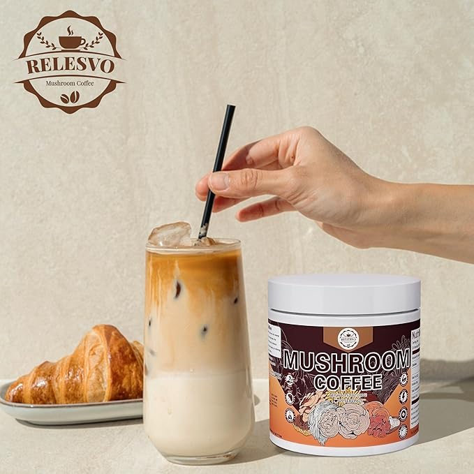 • Why You Need Relesvo Mushroom Coffee: Relesvo mushroom coffee blend harnesses the power of five potent mushrooms: Cordyceps enhances oxygen utilization for sustained energy and rapid recovery; Reishi supports mood regulation, stress relief, and peaceful sleep; Lion's Mane improves focus and mental clarity; Shiitake promotes metabolic function and immune health; King Trumpet boosts immunity and fights oxidative stress. This blend is designed to enhance your energy, focus, gut health, and immune system.