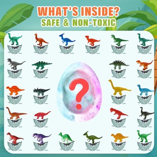 • Inside Surprise Toy: Each bath bomb contains a hidden toy surprise, adding an element of excitement and anticipation to every bath. Watch your child’s eyes fill with joy! Our dinosaur toys are made of safe materials and passed the U.S. Children's Products Toy Safety Test. These dinosaur toys do not pose a choking hazard and can also be used for collection, allowing children to learn about ancient creatures and cultivate their imagination. So, this bath bomb gift set will give boys and girls the best surprise at bath time