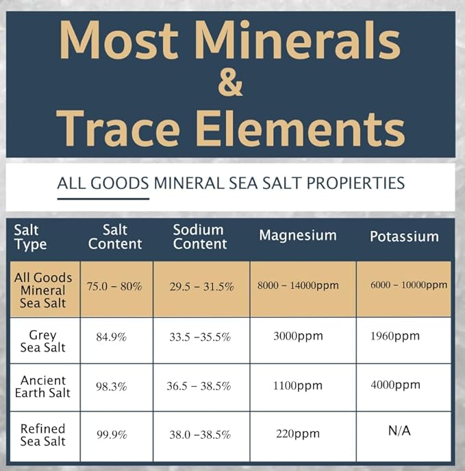 • ✔️ VITAL MINERALS: All Goods baja mineral sea salt, sourced from fresh seawater, hand harvested, makes every meal a special occasion, features a comprehensive mineral & trace element profile for enhanced taste & improved vitality.