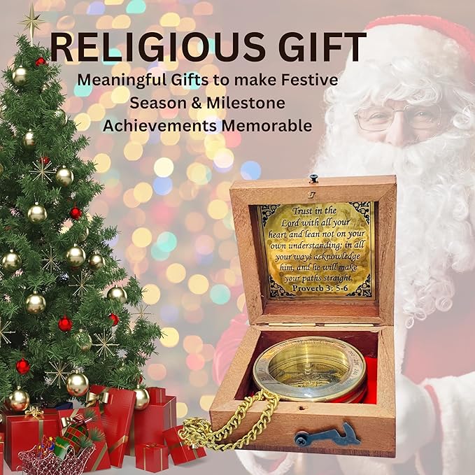 - Religious Gifts for Men Catholic Christian Boys, Women & Girls :- Trust in The Lord with All Your Heart -Proverbs 3:5 Quote Engraved on a Handmade Compass in a seasoned solid mango wood box makes a perfect Catholic Christian religious gifts for him & her..