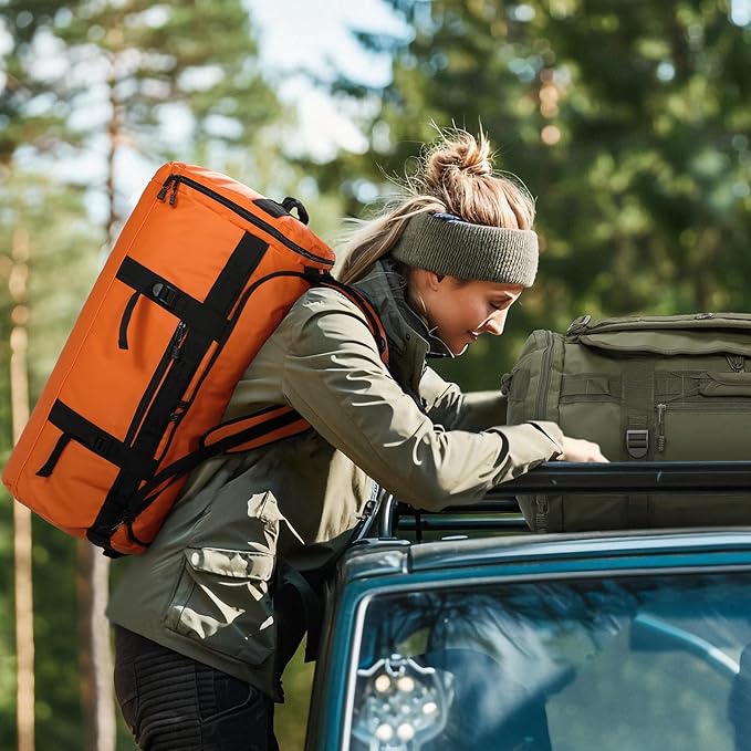 • Water Repellent Duffel ---- Built from heavy-duty water resistant tarpaulin and reinforced double layered tear-resistant floor panel, designed for harsh environments and features huge capacity to hold your workout gear or your trip stuffs. Best for hiking, camping, climbing, gym sports, car trip, traveling or other outdoor adventures