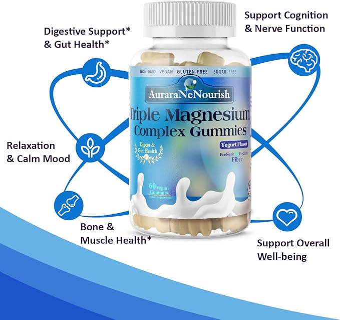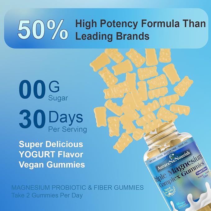 • Digestive & Gut Support: Our Magnesium Gummies are packed with plant-based probiotic and prebiotic fiber blends, offering a triple-action formula that combines fiber, magnesium, and probiotics to help maintain your natural flora and digestion balance. Additionally, we've added multivitamins D3, K2, and B6 to support overall wellness and energy levels. As a bonus, we've included extra dietary fiber to further enhance your digestive health, aiding in regularity and metabolic health for optimal overall health