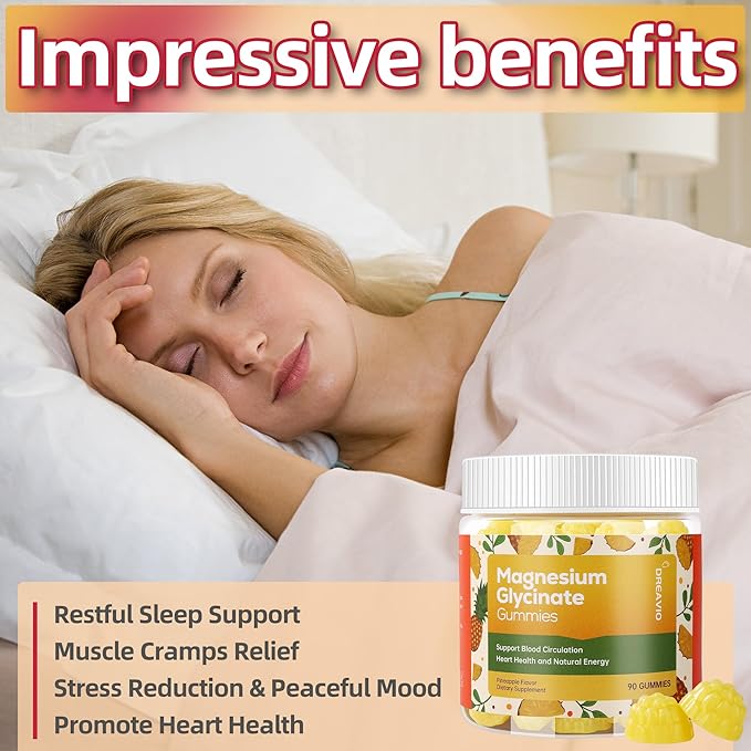- Unlock Wellness with Every Chew! : Experience the ultimate relaxation and sleep support with our premium Magnesium Glycinate Gummies. Dive into a world of relaxation with every chew. These gummies are crafted with Magnesium Glycinate and Ashwagandha, it works together to helps ease muscle tension, enhance cognitive function. Provide you with comprehensive relaxation and wellness benefits. Say goodbye to restless nights and wake up refreshed and rejuvenated
