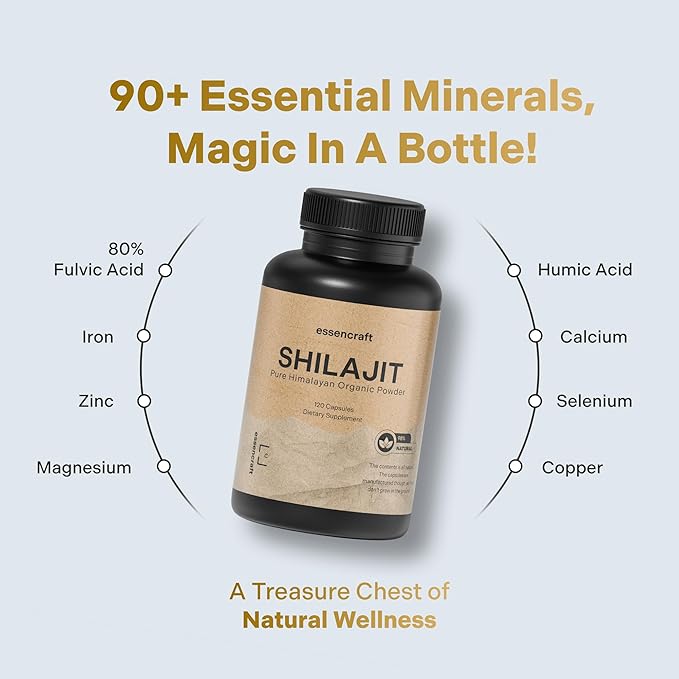- 85+ Trace Minerals – Natural shilajit is rich in fulvic acid, which enhances nutrient absorption, humic acid and essential minerals like iron, zinc, magnesium, calcium, selenium, and copper.
