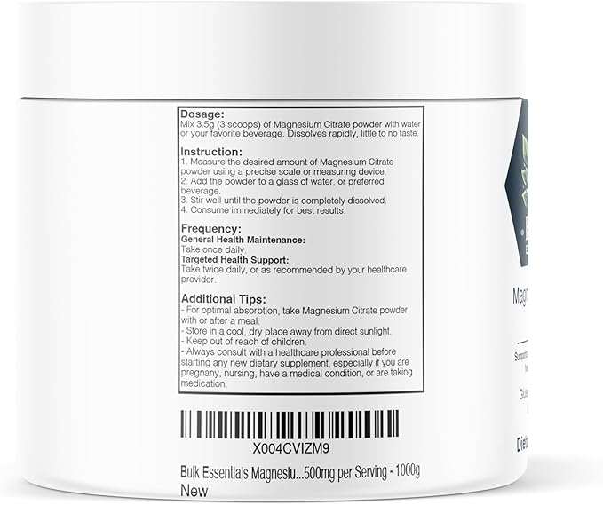 • Purity-Tested for Daily Use: Bulk Essentials magnesium citrate supplements undergoes third-party testing for quality and potency. It supports your daily health routines with freshness and effectiveness, making it a trusted supplement for your wellness journey