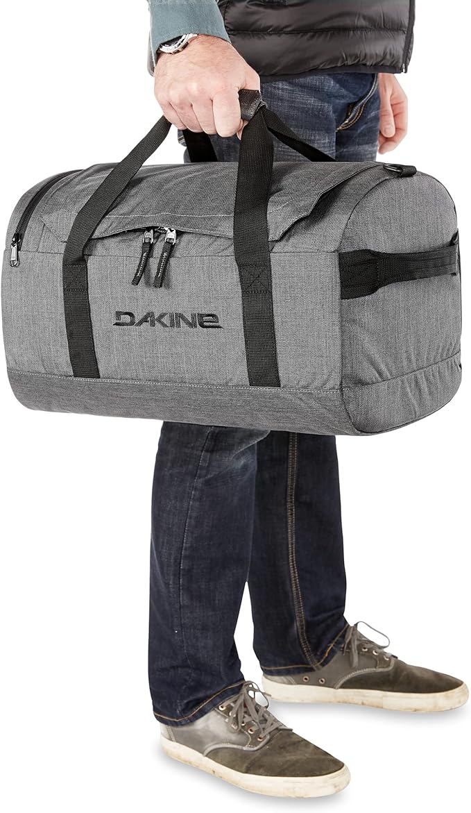 - A MIDSIZE DUFFLE FOR WEEKEND TRAVEL OR ROUTINE GYM TRIPS Road trip, weekend getaway or gym bag, the 35-liter Dakine EQ Duffle fits the job description. A full-length U-shaped opening offers easy access to everything inside.