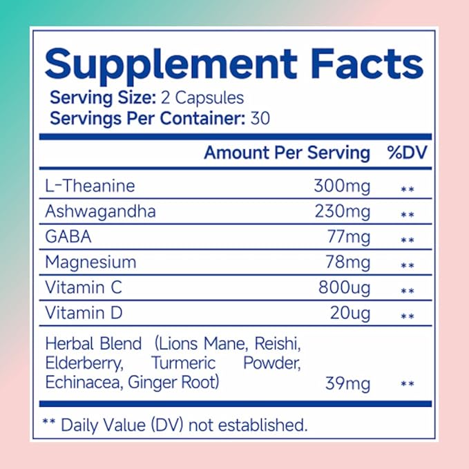 - Powerful Sress Relief Support: Each capsule delivers Ashwagandha, Gaba and L-theanine. Formulated to support a positive mood.