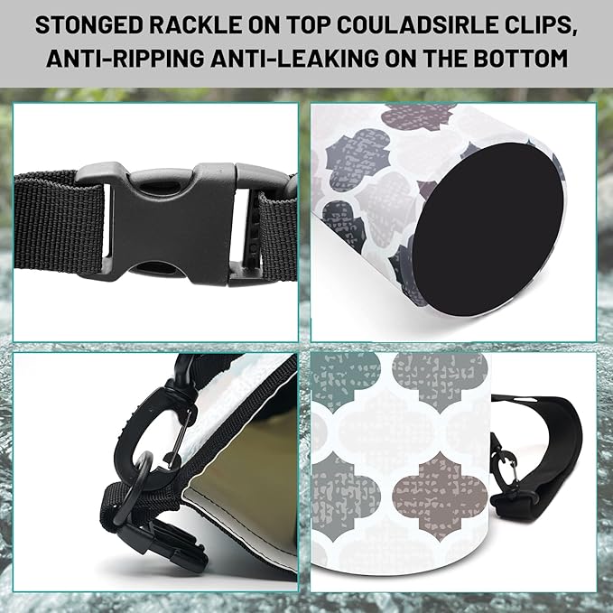 • Versatile Use for Every Adventure:Our Retro Gray Moroccan Geometric waterproof backpack perfect for kayaking, camping, rafting, and hiking, our multifunctional dry bag adapts to various outdoor activities, our marine dry bags making it a must-have for adventure seekers and outdoor enthusiasts.