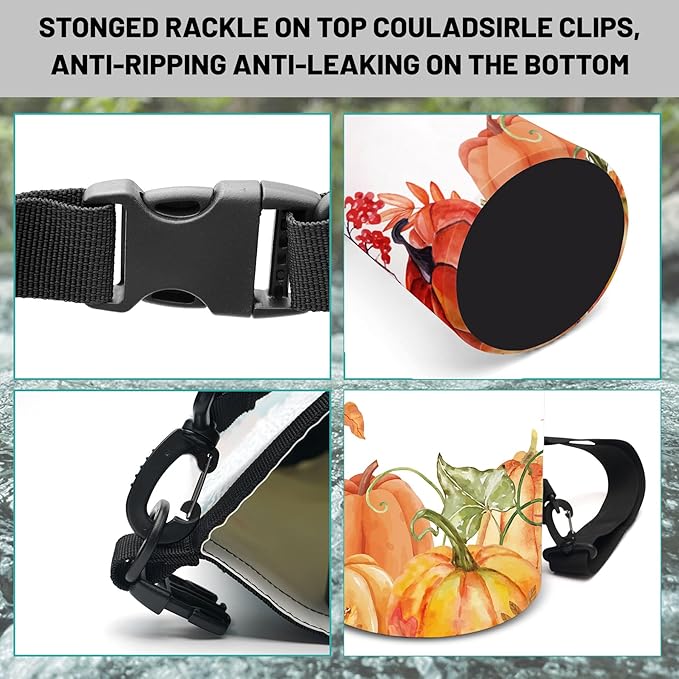 - Adjustable Carrying Options: Available in 5L and 10L with a removable shoulder strap for cross-body carry, or a 20L version featuring two adjustable straps for backpack-style comfort.Roll-top closure system provides secure watertight seal, keep your gear dry in any wet situation.Unique Autumn Pumpkin Maple Leaves design dry bag backpack Carry it your way!