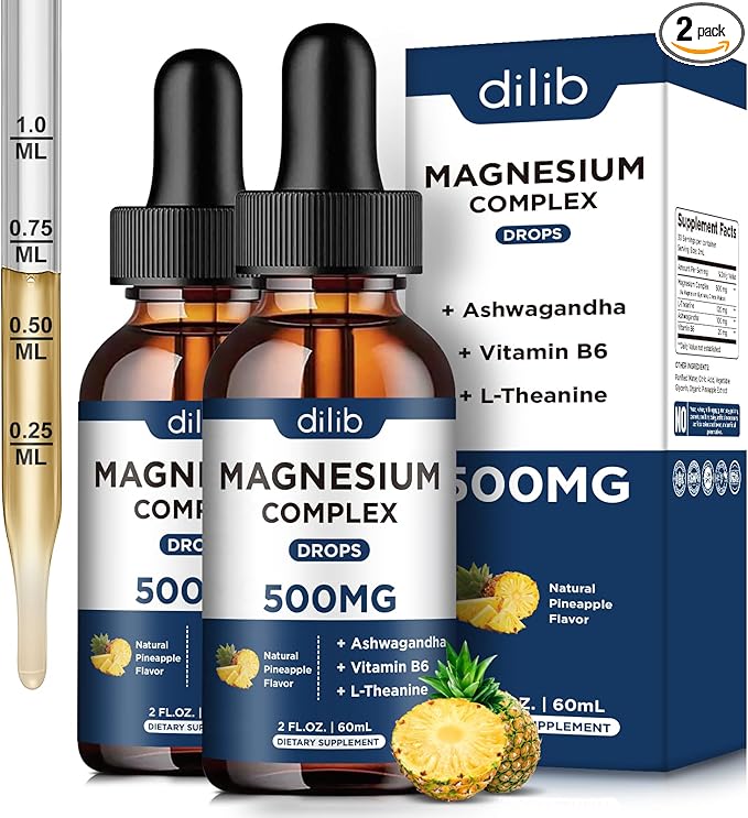 - STRESS RELIEF AND CALM: Formulated with 500 mg Magnesium Glycinate, Citreate, Malate, 120 mg L-Theanine, 100 mg Ashwagandha and 20 mg Vitamin B6, the Dilib magnesium complex supplement helps you manage occasional stress, release tension in your body and calm your mind and reduce migraine headaches and leg cramps. You may feel more relaxed during the day for work & study and more restful at night for better sleep
