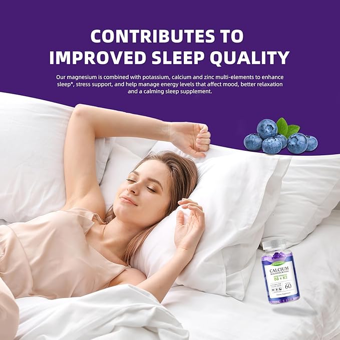 Calcium Magnesium Zinc Gummies with Vitamin D3 & K2 - High Potency Enhanced Absorption -60 Blueberry Gummies Flavored