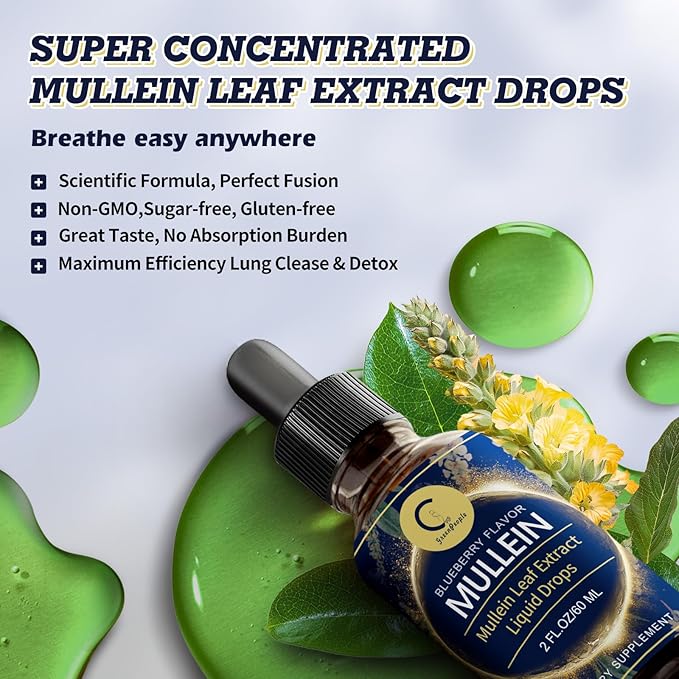 - NATURAL DETOX & CLEANSE: Natural mullein leaf extract is known for over centuries for its powerful benefits in respiratory tract and overall lung health. Use mullein drops helps lung cleanse and support your body's natural defense, our highly concentrated herb mullein leaf supplement contains 13 natural ingredients to help you relieve respiratory symptoms and improve lung health.