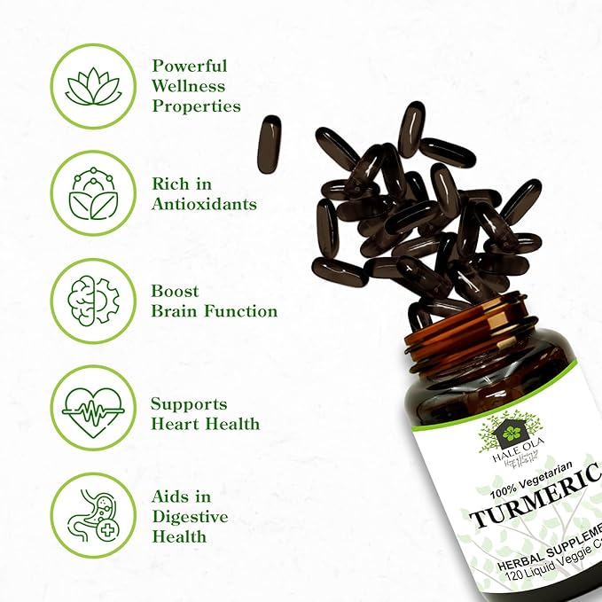 • The Benefits of Selecting Our Product: We are dedicated to providing natural health solutions with a focus on quality and purity. Hale Ola stands out with our commitment to quality and efficacy. Our turmeric liquid caps combine advanced extraction methods, superior bioavailability, and the benefits of whole turmeric. We prioritize your health by using pure, potent, and safe ingredients. Experience enhanced wellness with a product designed for optimal absorption and maximum health benefits.