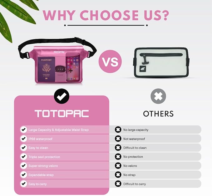 • 100% Waterproof Protection – This waterproof pouch features triple zip-lock seals and a fold-over Velcro closure to keep your valuables safe and dry, even when submerged up to 32 feet. Perfect for water sports like swimming, kayaking, and snorkeling.