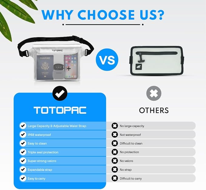 • 100% Waterproof Protection – This waterproof pouch features triple zip-lock seals and a fold-over Velcro closure to keep your valuables safe and dry, even when submerged up to 32 feet. Perfect for water sports like swimming, kayaking, and snorkeling.
