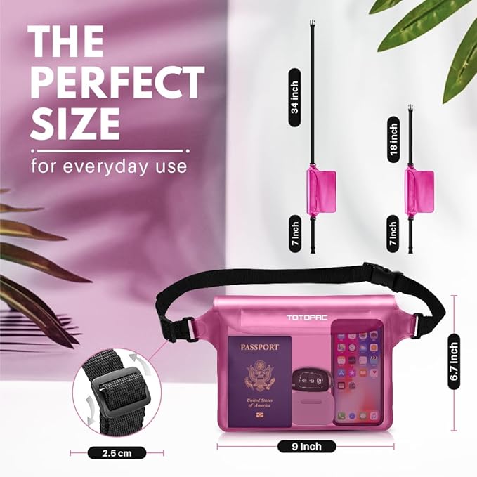 • Spacious & Durable PVC Material – Made from high-quality PVC material, this waterproof bag is lightweight yet tough, measuring 9 x 6.7 inches to store your phone, cash, credit cards, keys, and more without worrying about getting wet.