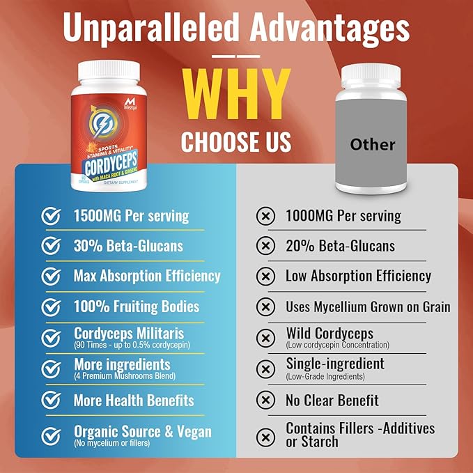 - WHY CORDYCEPS MUSHROOM CAPSULES: This is a versatile and highly effective mushroom supplement that naturally boosts your energy levels and effectively supports a healthy immune system. Modern scientific research shows that Cordyceps have free radical scavenging properties and are rich in natural polysaccharides, beta-glucans, and antioxidants. Cordyceps Mushroom Capsules greatly benefit energy, endurance, vitality & vigor, athletic performance, immunity, mood, liver health, and overall health